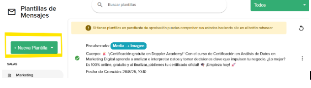 - Create from predefined templates (crear desde predefinidas): to start from a gallery of ready-to-use messages.
