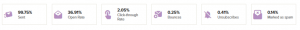 Open Rate:  Percentage of recipients who opened the Email. This enables you to assess the effectiveness of the subject line and the timing of the email’s dispatch.