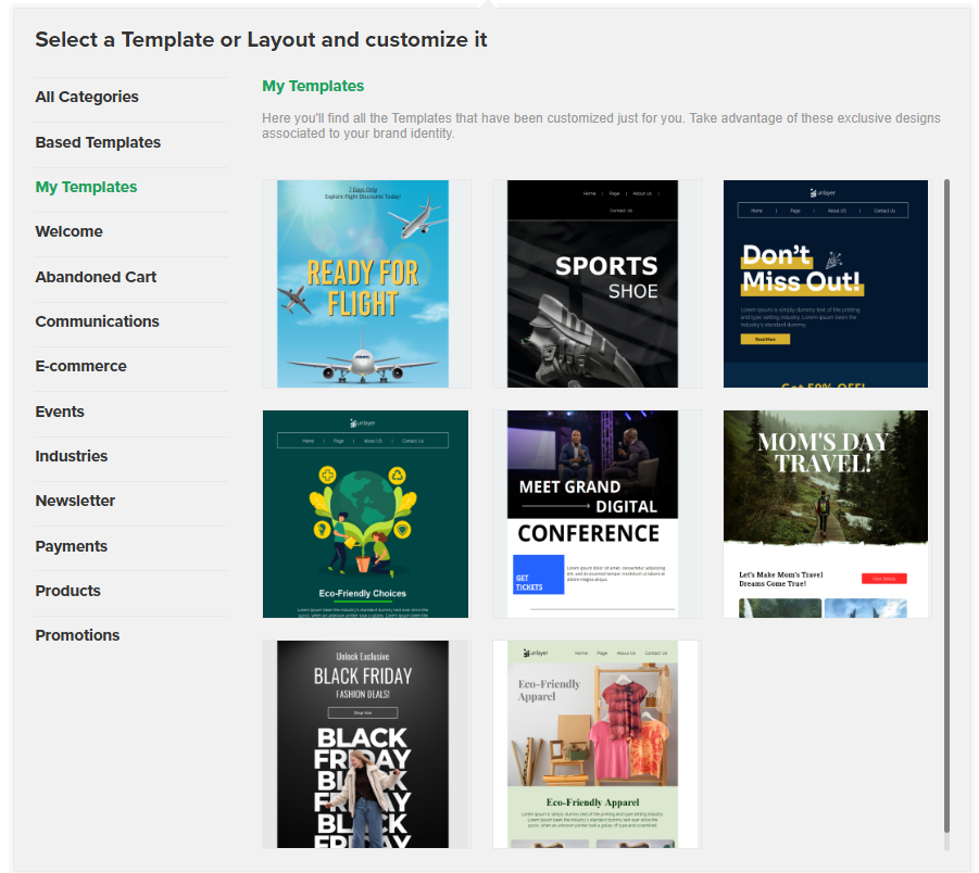 Here it is possible to choose between the different pre-designed templates or create one from scratch by clicking on “Create template”.