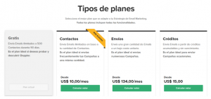 1. Elige el Plan que más se adapte a tus necesidades: por Contactos, por Envíos o por Créditos.