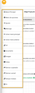 Funciona de manera similar al menú principal, pero es para agregar opciones dentro de una rama del Flujo, permitiendo agregar más alternativas.