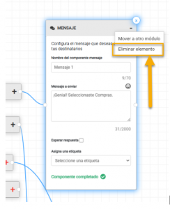 Notarás que los primeros tres componentes no se pueden eliminar, ya que son parte de la estructura base del Chatbot.