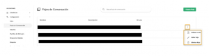 Una vez allí, haz clic en la opción Configuración del menú izquierdo y selecciona Flujos de Conversación y hacer clic en +Nuevo Flujo.