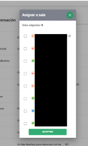 Haz clic en Asignar a sala y se abrirá una ventana emergente para elegir en qué sala(s) implementarás el Flujo.
