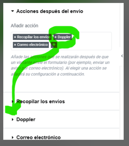 Cómo integrar Formularios de Doppler a través de Elementor Si usas Elementor Pro en tu Sitio Web de WordPress, ahora puedes conectar fácilmente tus Formularios con Doppler para que cada Contacto que los complete se sincronice automáticamente en tu cuenta. 👉 Ten en cuenta que esta Integración solo está disponible para usuarios de Elementor Pro, ya que la funcionalidad de Formularios no se incluye en la versión gratuita. Pasos para integrar un Formulario de Elementor con Doppler Agregar un Formulario en tu página con Elementor Dentro del editor de Elementor, busca el widget “Form”. Arrástralo hasta la sección de tu página donde quieras que aparezca el Formulario. Configurar los campos del formulario Personaliza los Campos de acuerdo a la información que quieras solicitar (ejemplo: nombre, Email, teléfono). Puedes añadir, eliminar o reordenar Campos arrastrándolos dentro del Editor. Definir la acción al enviar (Submit Action) En la pestaña de Acciones después del envío, selecciona la opción de Integración con Doppler. Una vez integrado con Doppler, vas a poder mapear los campos y listas. ¡Listo! 🎉 Cada vez que alguien complete tu Formulario de Elementor, sus datos se enviarán automáticamente a Doppler para que puedas nutrir tu Base de Datos y activar Campañas de Email o Automation. 💡 DopplerTip: Aprovecha esta Integración para crear Flujos de Automatización que envíen un Email de Bienvenida a quienes se registren desde tu Sitio. ¿Necesitas ayuda? Escríbenos a [email protected] y nuestro equipo te acompañará en el proceso.